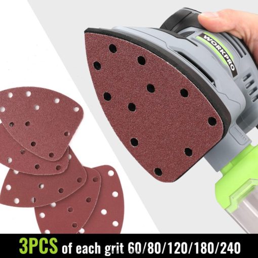 āķa un cilpas ātra maiņa: Workpro detaļu slīpmašīnas pamatne āķa un cilpas sistēmas plāksnes dizains, viegli noņemams un nomaināms smilšpapīrs;