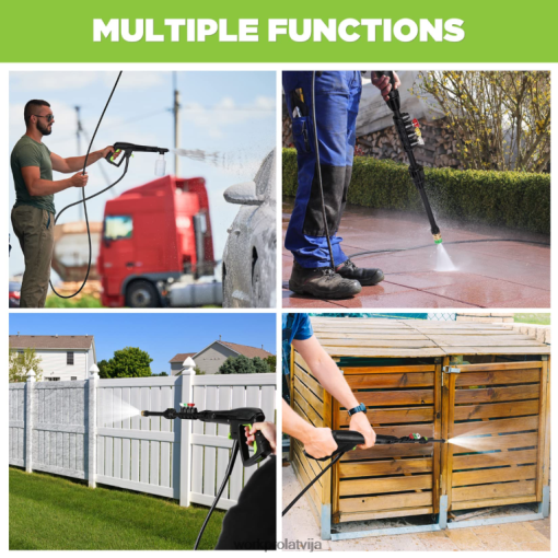 Ātrā savienojuma sprauslas un putu lielgabals: komplektācijā ir 4 sprauslas, kuru leņķis ir no 0 līdz 15, 25 līdz 40, lai viegli veiktu vieglus, vidējas un lielas slodzes tīrīšanas darbus. 400 ml putu kanons ir ideāls piederums stipru traipu noņemšanai.