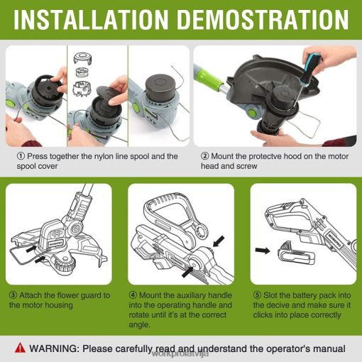 rīks noderīga 20 v bezvadu stīgu trimmeris/apmales 12 collas ar 2 ah litija jonu akumulatoru, 1 stunda ātrais lādētājs, 16,4 ft trimmera aukla komplektā WORKPRO 46XDP293
