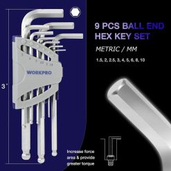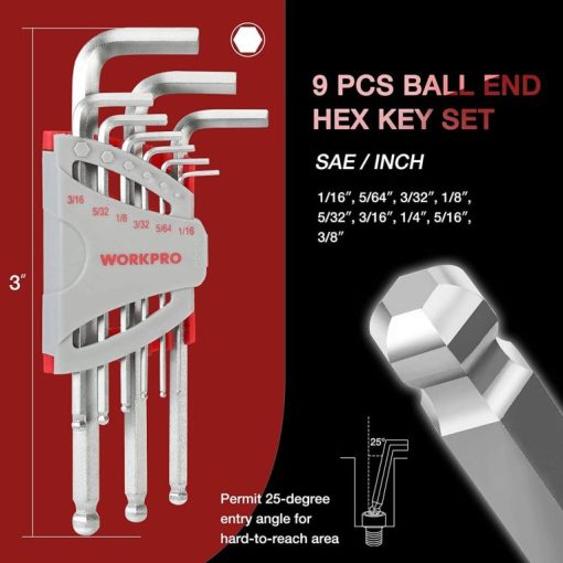 rīks noderīga 27 gab. garas rokas lodveida uzgriežņu atslēgu komplekts lieliskai saķerei un griezes momenta pārnešanai WORKPRO 46XDP62