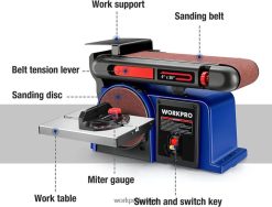 šajā slīpmašīnā ir 4 x 36 collu lentes slīpmašīna un 6 collu slīpēšanas disks ar papildu 3 siksnu un 3 disku, kas atbilst jūsu dažādiem lietojumiem, piemēram, kokam. koka apstrāde kļūs daudz vienkāršāka ar workpro lentes/disku slīpmašīnu.