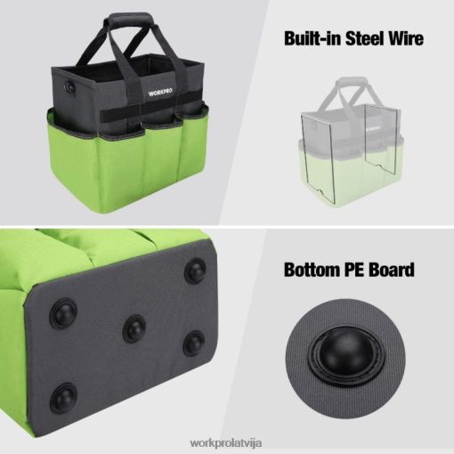 Noturīgs un plats -Atvērta mute: šai dārzkopības somiņai ir plaša mute, lai to varētu viegli sakārtot un piekļūt. Izstrādāts ar stabilu un lielu slodzi nesošu dibenu, iebūvētu PE putuplastu un iekšējā tērauda stiepli, kas atvieglo instrumentu somas ievietošanu. piecelties pašam, ar vai bez instrumentiem.