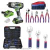 magnētiskie skrūvgrieži ar rievām; izvelkamais kastes griezējs un 10 papildu asmeņi; spīļu āmurs; 10 pēdu mērlente;