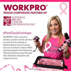 rozā lente:> Workpro tools no šī pirkuma ziedo 0,20 ASV dolārus valsts krūts vēža fondam, inc.. nbcf palīdz sievietēm tagad, nodrošinot agrīnas diagnostikas, izglītības un atbalsta pakalpojumus tiem, kurus skārusi krūts vēzis;
