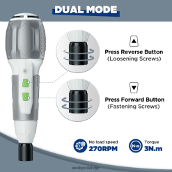 elektrisks/manuāls divi vienā: ar elektrisko un manuālo režīmu, mūsu 2-in-1 akumulatora skrūvgriezis ir lieliski piemērots gan lieljaudas darbiem, gan vieglas slodzes darbiem. un, kad strāva ir izslēgta, varat turpināt to lietot manuāli, lai pabeigtudarbu.