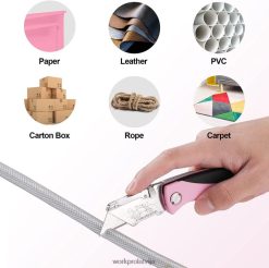 Drošs lietošanā: Workpro saliekamais nazis ir veidots ar pretslīdes abs rokturi, kas nodrošina lielāku drošību. ergonomiskais roktura izliekums pieguļ jūsu rokām. nav jāuztraucas par to, ka kastes griezēja asmens darba laikā izslīd no rokas. turklāt salokāmā naža aizmugures bloķēšanas dizains droši notur jūsu asmeņus lietošanas laikā.