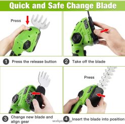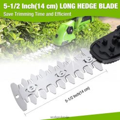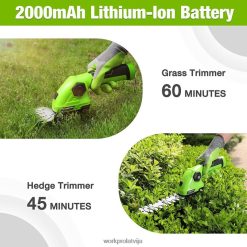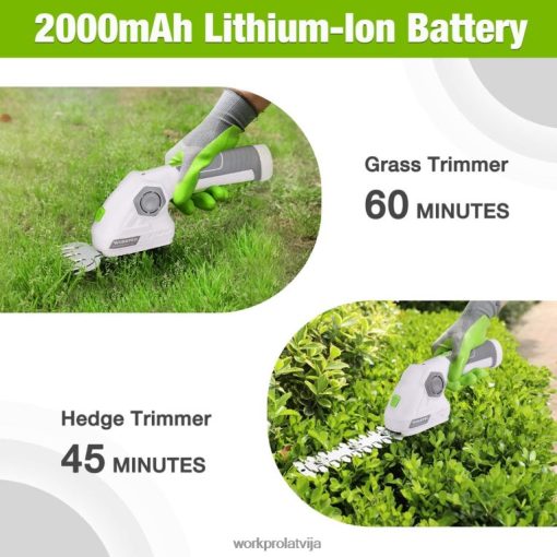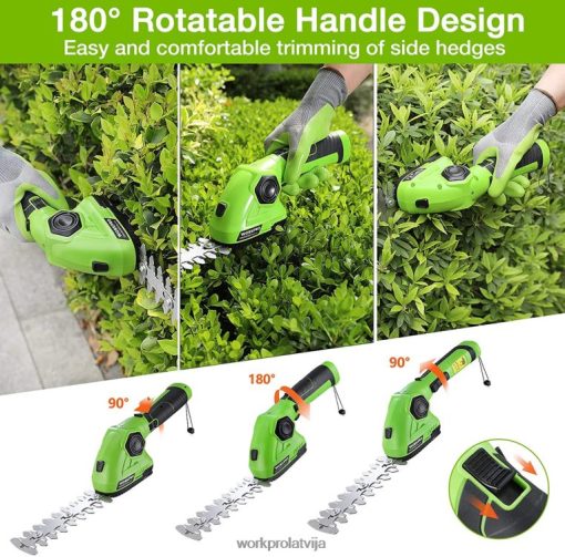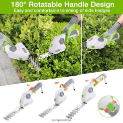 Workpro akumulatora dzīvžogu griezējs ar 180 regulējamu rokturi nodrošinās jums ērtu satvērienu, apgriežot dzīvžogu kreiso vai labo pusi. Akumulatora zāles trimera kompaktais dizains nodrošina, ka tas var ietilpt dažādās mazās telpās. vislabākais lietojums — mazi dārzi, dzīvžogu kopšana un platības, kuras jūsu pļaujmašīna nevar sasniegt.